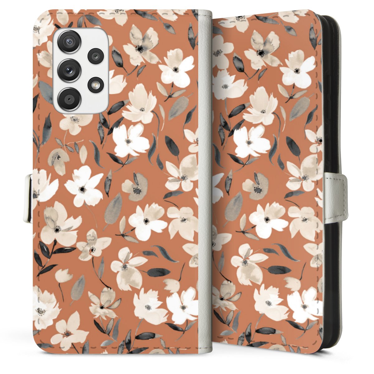 For our Sideflip Case we are using our advanced direct printing technology. The back and frontside are fully printabale, the inside of the phone bag is left unprinted. You can order the phone case without print, printed completely or also with a partial print.