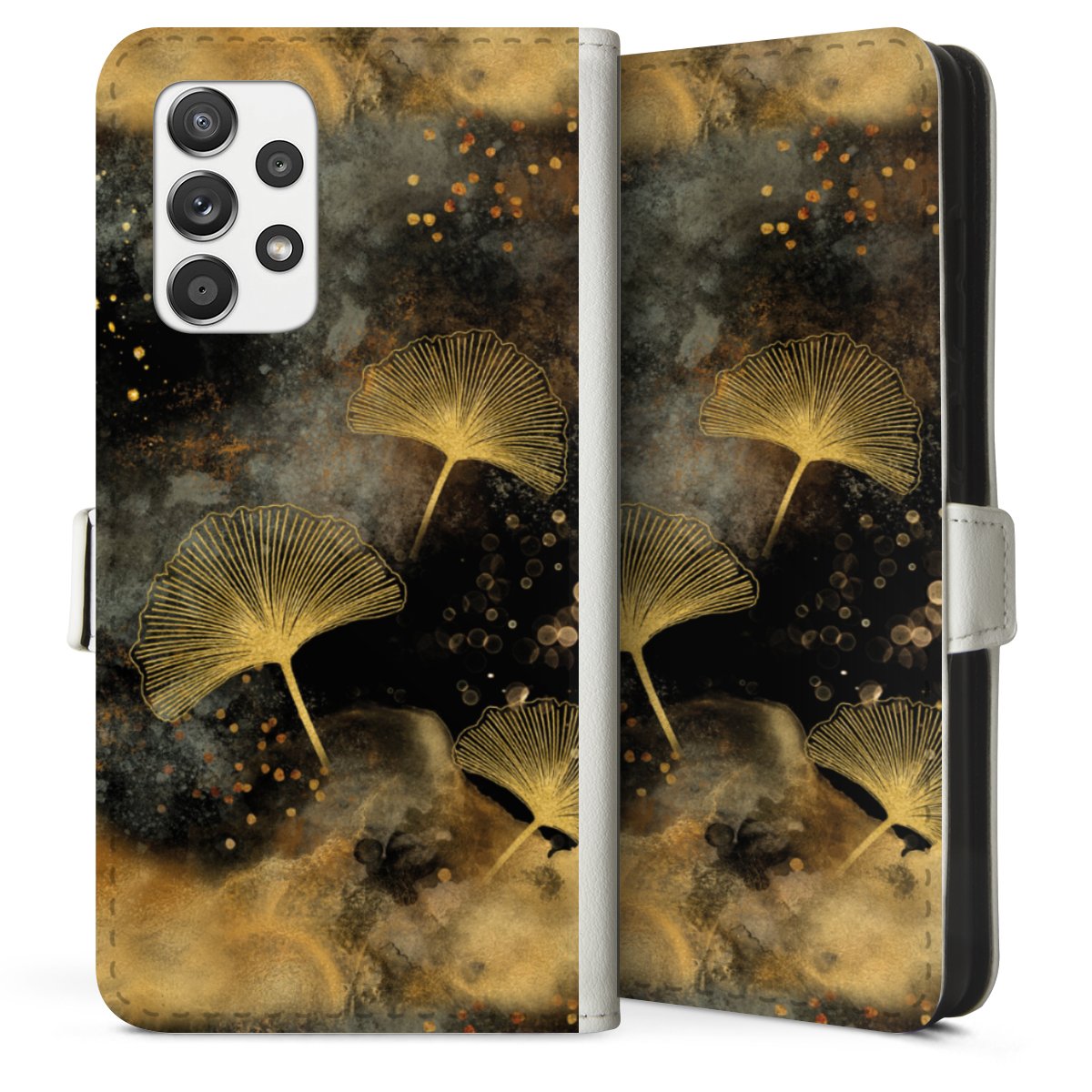 For our Sideflip Case we are using our advanced direct printing technology. The back and frontside are fully printabale, the inside of the phone bag is left unprinted. You can order the phone case without print, printed completely or also with a partial print.
