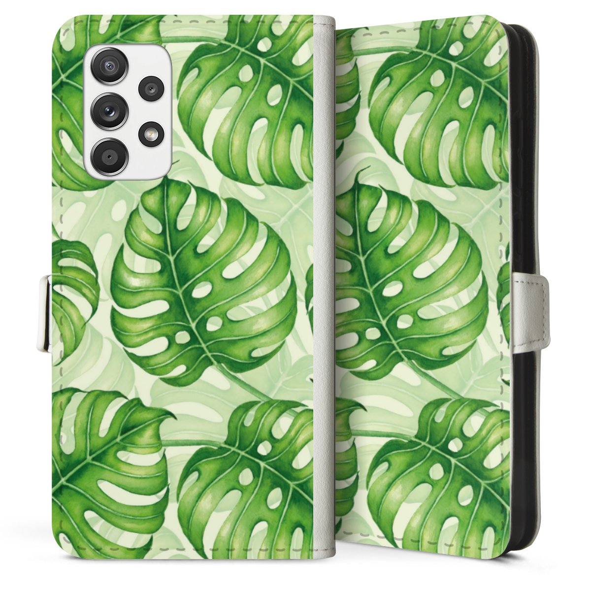 For our Sideflip Case we are using our advanced direct printing technology. The back and frontside are fully printabale, the inside of the phone bag is left unprinted. You can order the phone case without print, printed completely or also with a partial print.