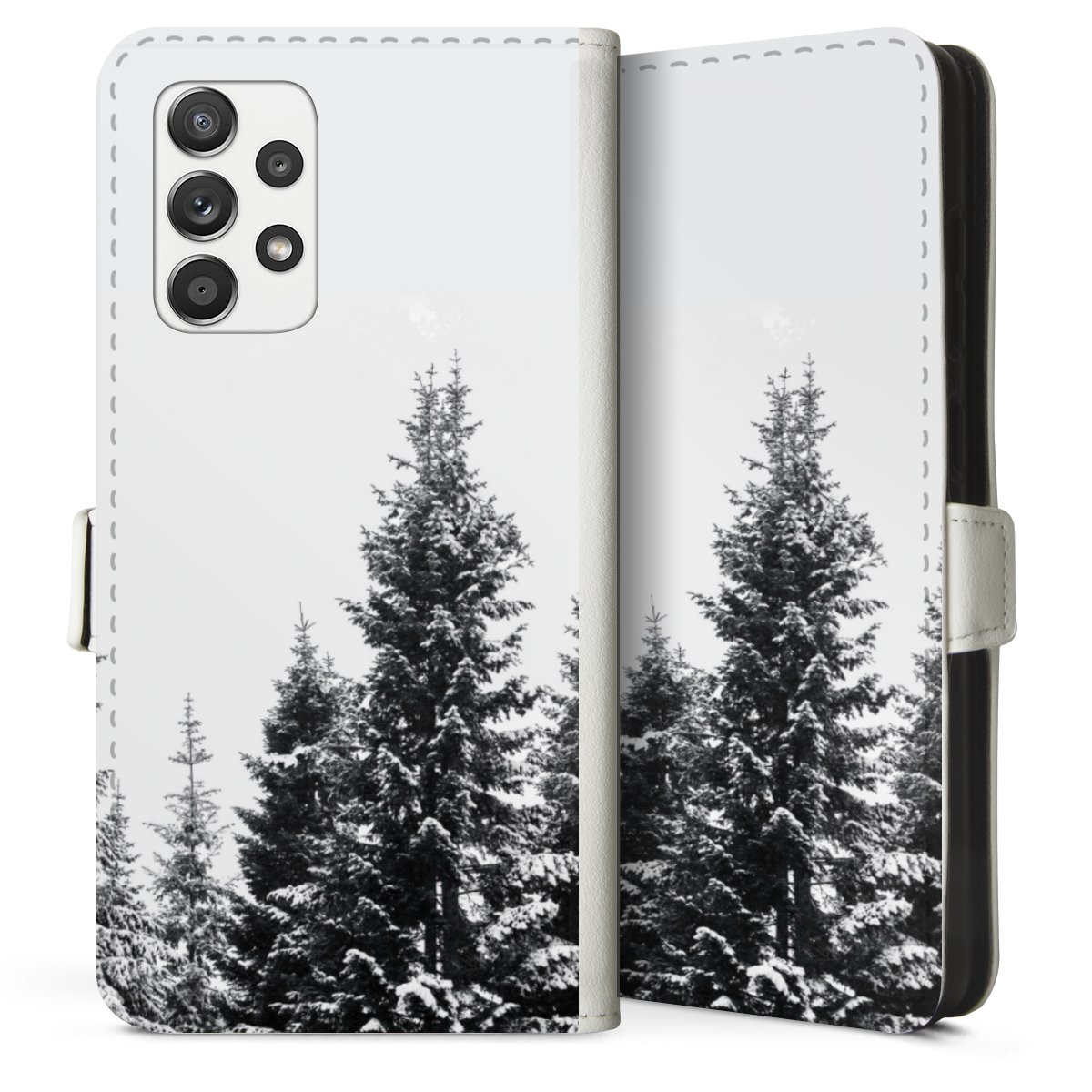 For our Sideflip Case we are using our advanced direct printing technology. The back and frontside are fully printabale, the inside of the phone bag is left unprinted. You can order the phone case without print, printed completely or also with a partial print.