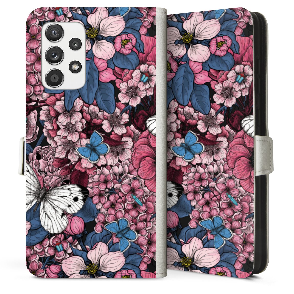 For our Sideflip Case we are using our advanced direct printing technology. The back and frontside are fully printabale, the inside of the phone bag is left unprinted. You can order the phone case without print, printed completely or also with a partial print.