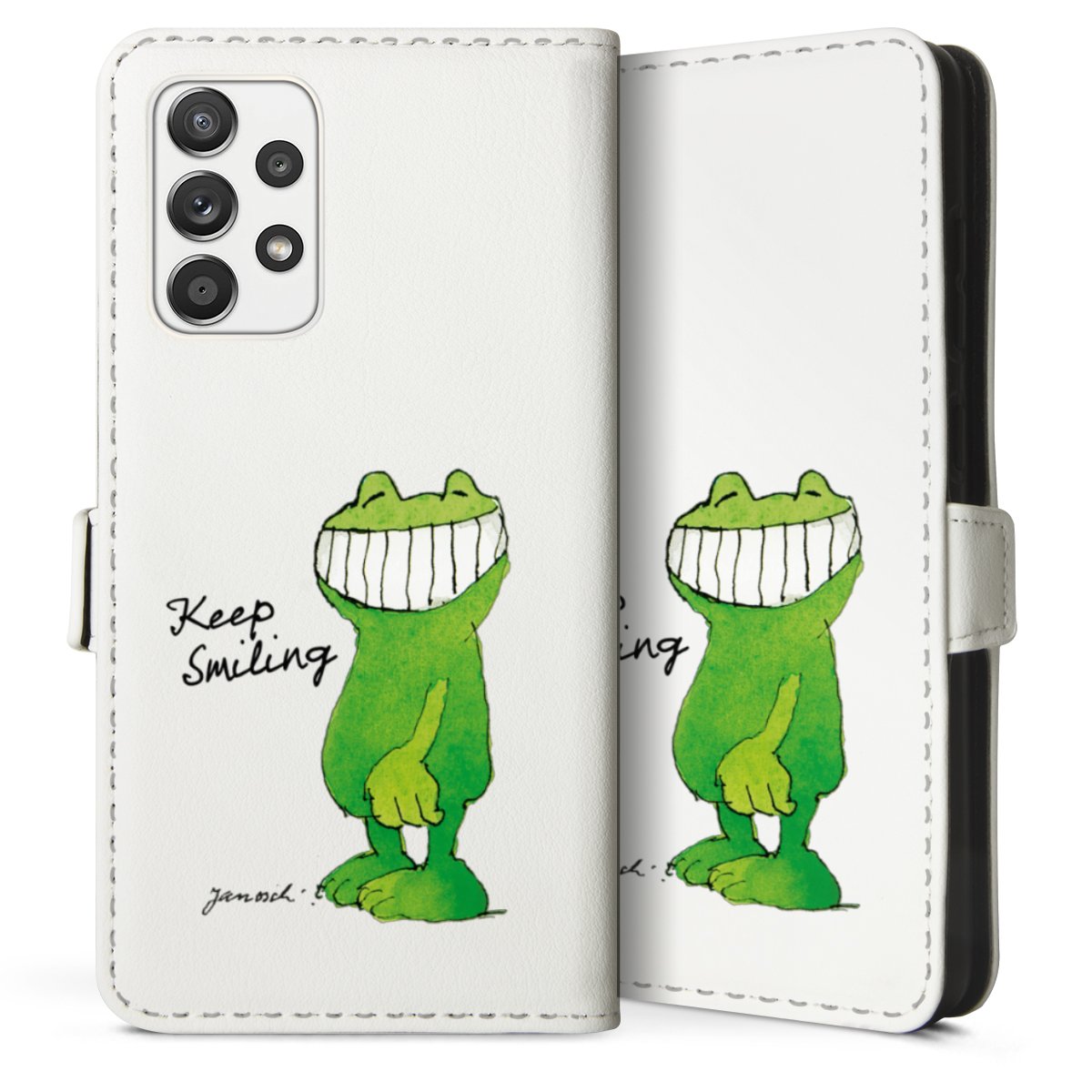 For our Sideflip Case we are using our advanced direct printing technology. The back and frontside are fully printabale, the inside of the phone bag is left unprinted. You can order the phone case without print, printed completely or also with a partial print.