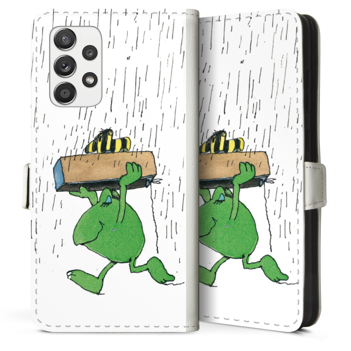 For our Sideflip Case we are using our advanced direct printing technology. The back and frontside are fully printabale, the inside of the phone bag is left unprinted. You can order the phone case without print, printed completely or also with a partial print.
