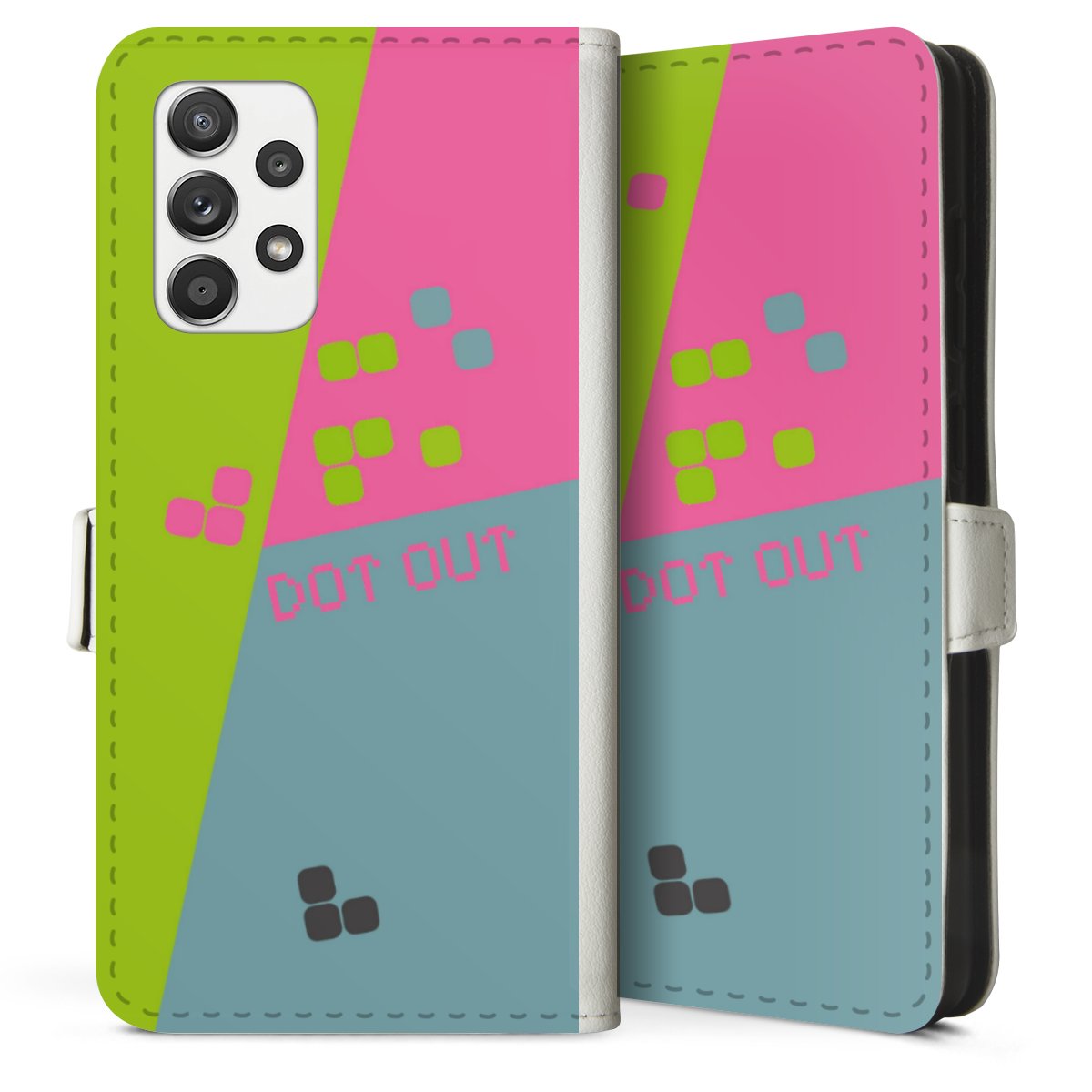 For our Sideflip Case we are using our advanced direct printing technology. The back and frontside are fully printabale, the inside of the phone bag is left unprinted. You can order the phone case without print, printed completely or also with a partial print.