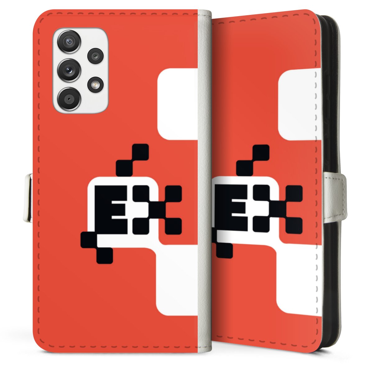 For our Sideflip Case we are using our advanced direct printing technology. The back and frontside are fully printabale, the inside of the phone bag is left unprinted. You can order the phone case without print, printed completely or also with a partial print.