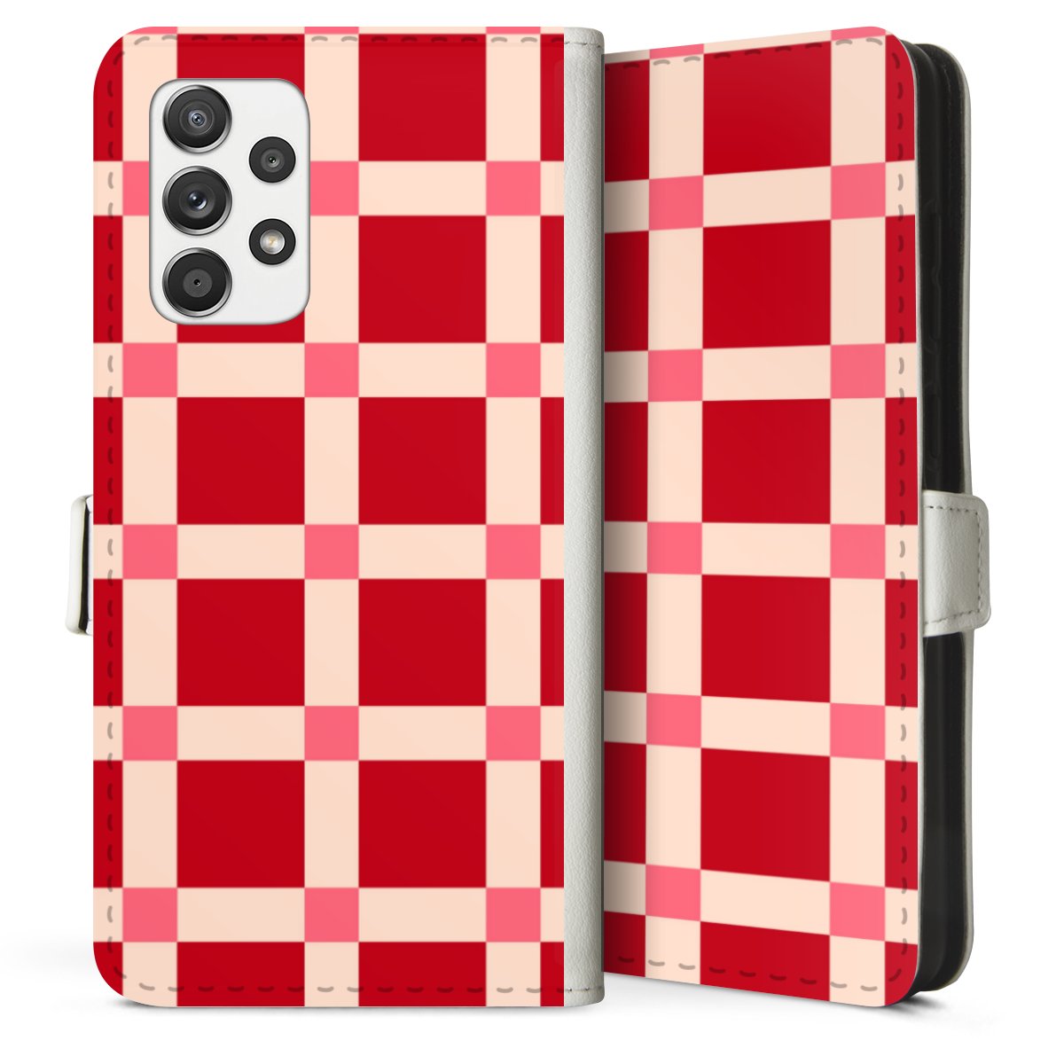 For our Sideflip Case we are using our advanced direct printing technology. The back and frontside are fully printabale, the inside of the phone bag is left unprinted. You can order the phone case without print, printed completely or also with a partial print.