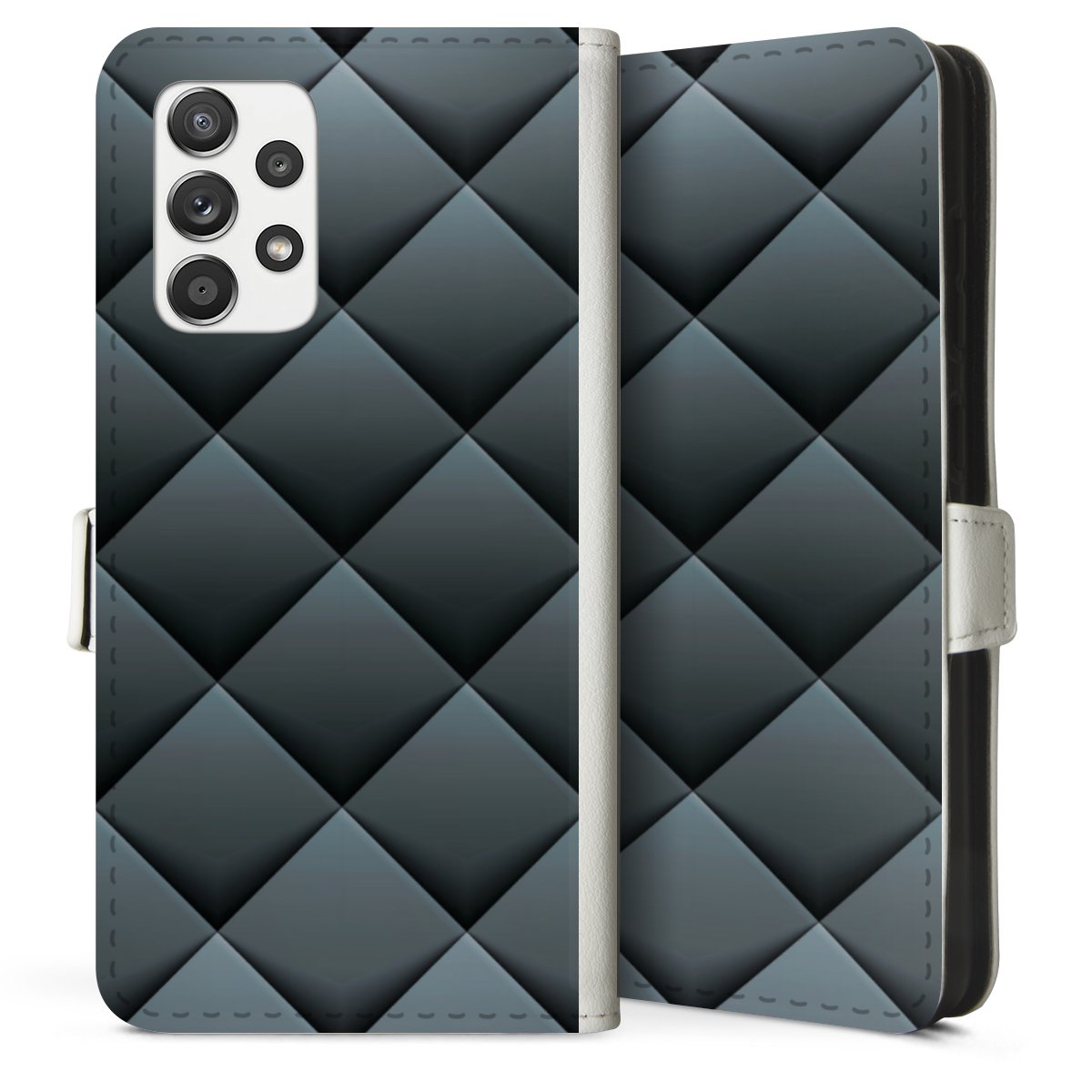 For our Sideflip Case we are using our advanced direct printing technology. The back and frontside are fully printabale, the inside of the phone bag is left unprinted. You can order the phone case without print, printed completely or also with a partial print.
