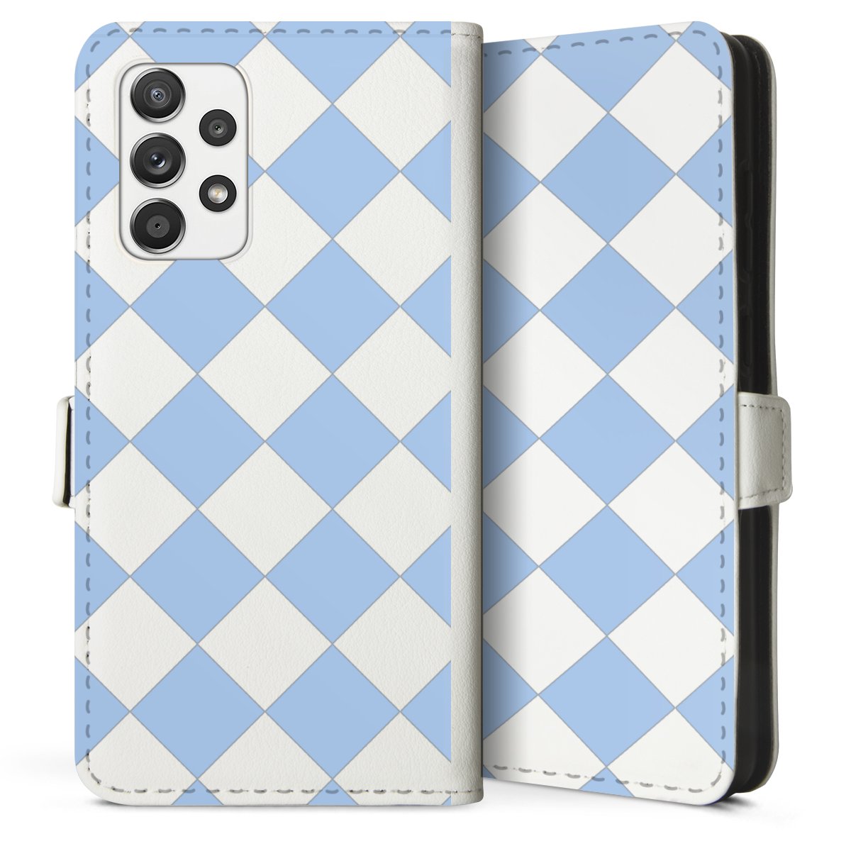 For our Sideflip Case we are using our advanced direct printing technology. The back and frontside are fully printabale, the inside of the phone bag is left unprinted. You can order the phone case without print, printed completely or also with a partial print.