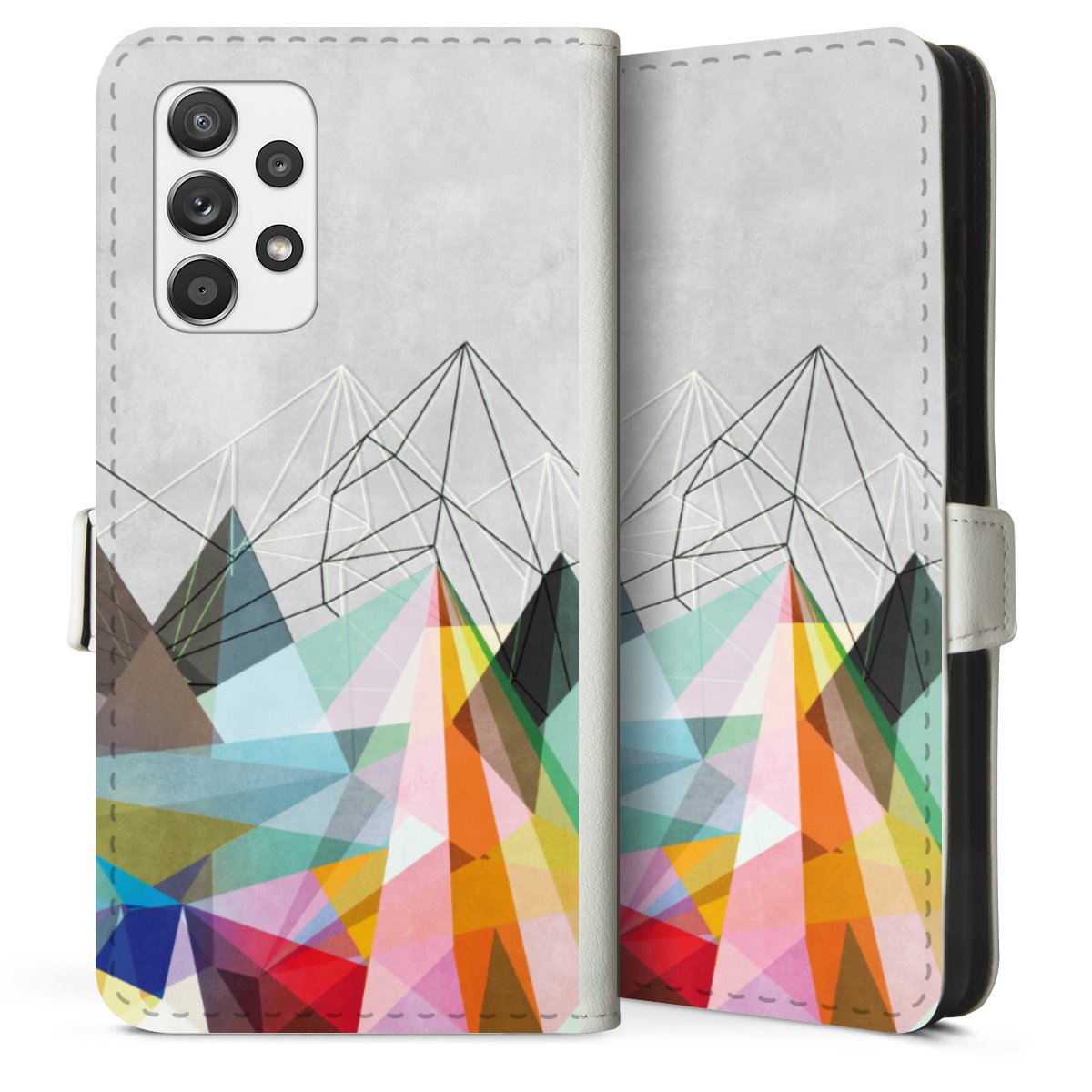 For our Sideflip Case we are using our advanced direct printing technology. The back and frontside are fully printabale, the inside of the phone bag is left unprinted. You can order the phone case without print, printed completely or also with a partial print.