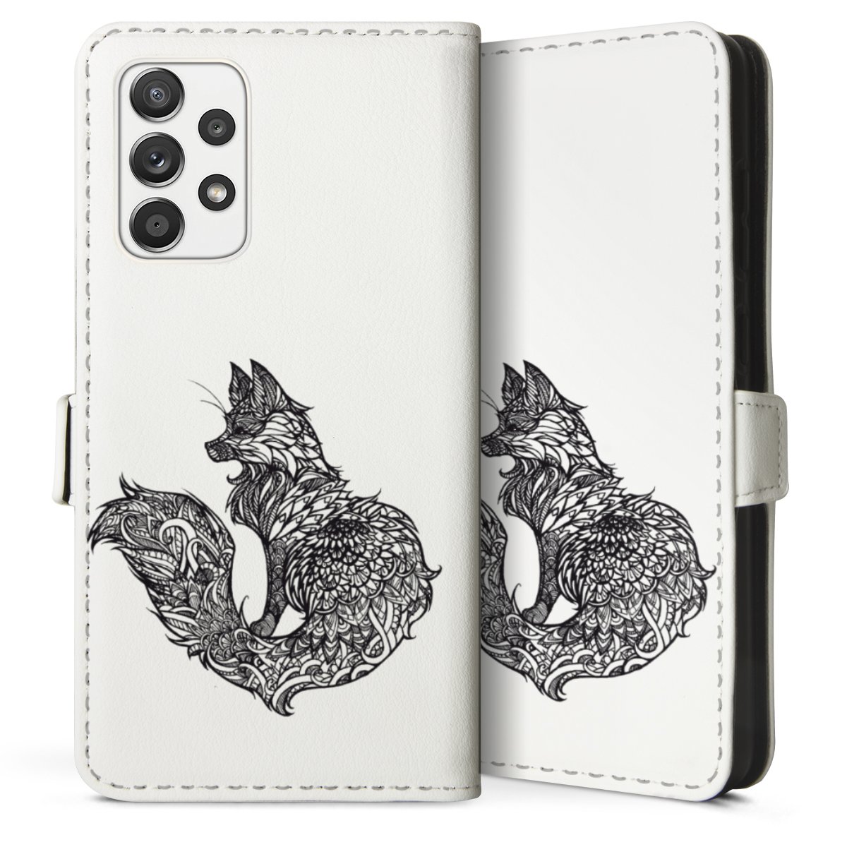 For our Sideflip Case we are using our advanced direct printing technology. The back and frontside are fully printabale, the inside of the phone bag is left unprinted. You can order the phone case without print, printed completely or also with a partial print.