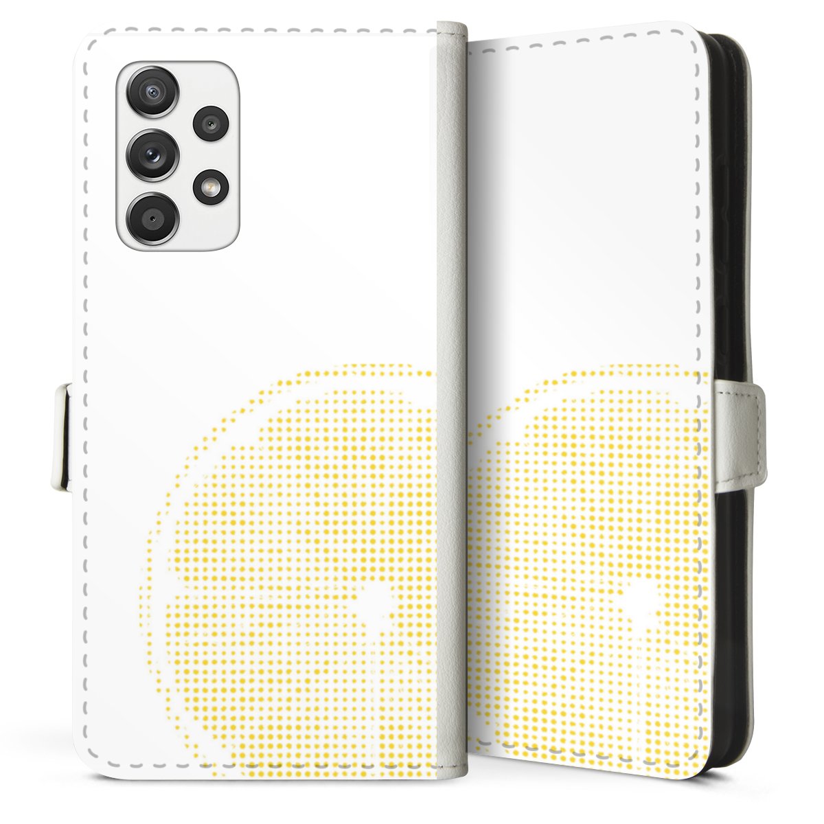 For our Sideflip Case we are using our advanced direct printing technology. The back and frontside are fully printabale, the inside of the phone bag is left unprinted. You can order the phone case without print, printed completely or also with a partial print.