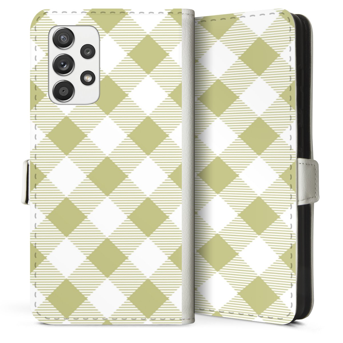 For our Sideflip Case we are using our advanced direct printing technology. The back and frontside are fully printabale, the inside of the phone bag is left unprinted. You can order the phone case without print, printed completely or also with a partial print.