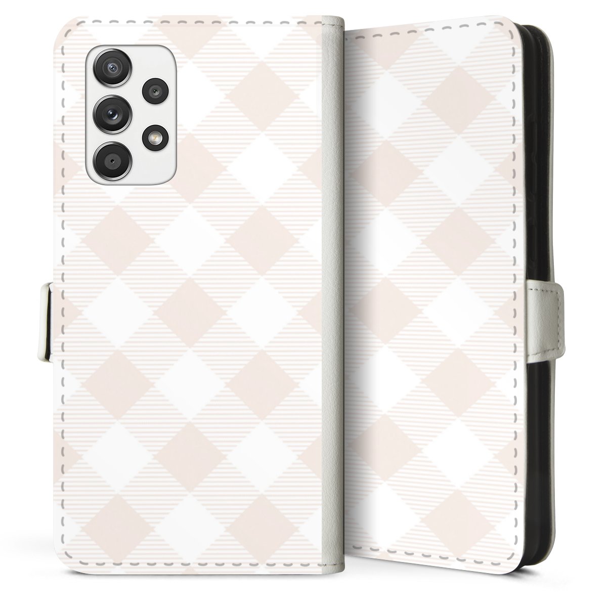 For our Sideflip Case we are using our advanced direct printing technology. The back and frontside are fully printabale, the inside of the phone bag is left unprinted. You can order the phone case without print, printed completely or also with a partial print.