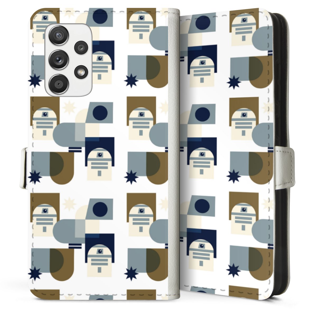 For our Sideflip Case we are using our advanced direct printing technology. The back and frontside are fully printabale, the inside of the phone bag is left unprinted. You can order the phone case without print, printed completely or also with a partial print.