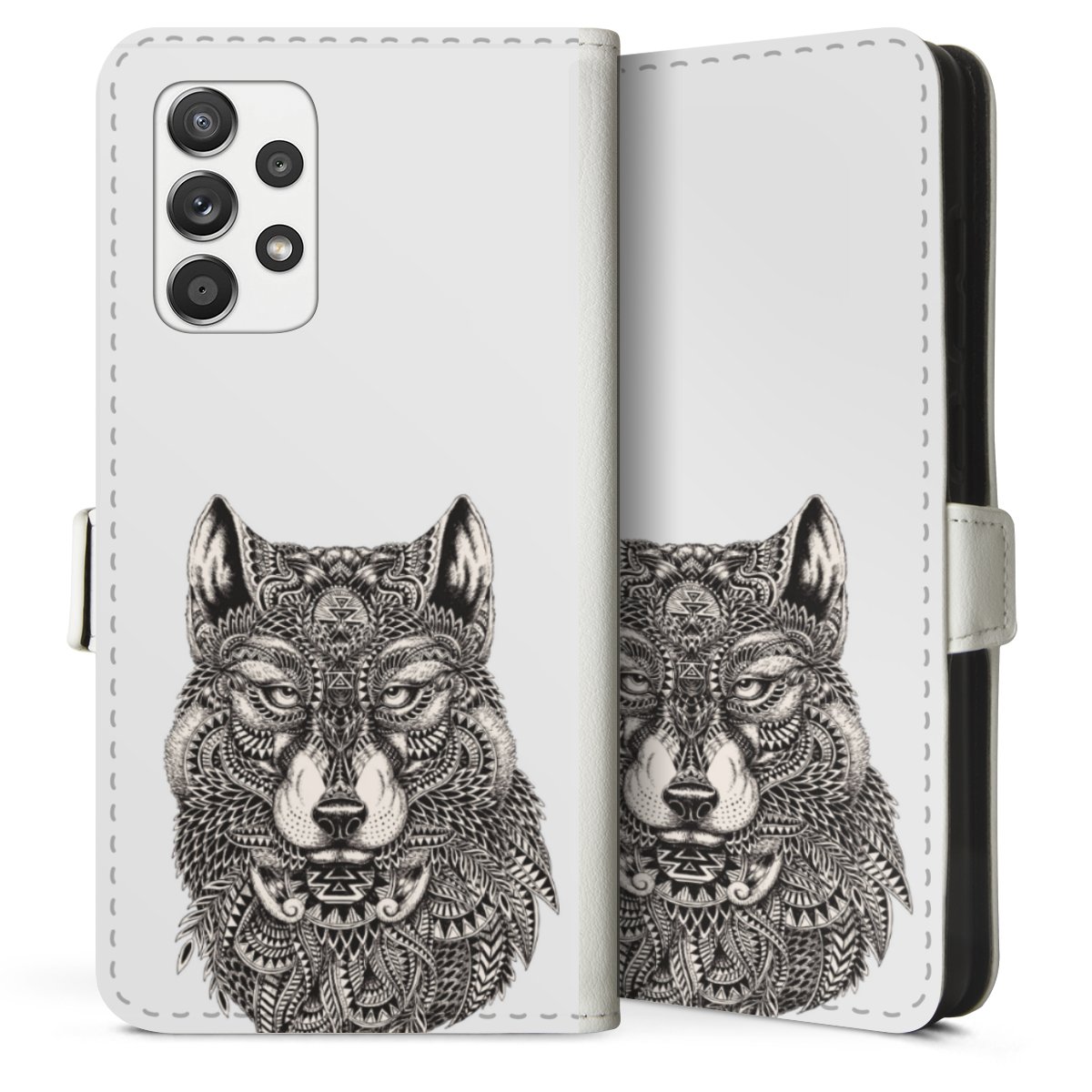 For our Sideflip Case we are using our advanced direct printing technology. The back and frontside are fully printabale, the inside of the phone bag is left unprinted. You can order the phone case without print, printed completely or also with a partial print.