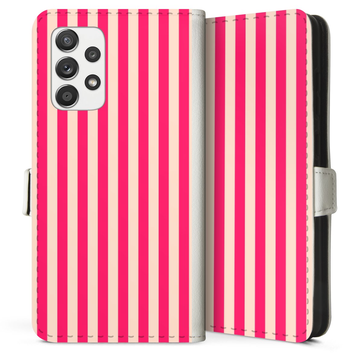 For our Sideflip Case we are using our advanced direct printing technology. The back and frontside are fully printabale, the inside of the phone bag is left unprinted. You can order the phone case without print, printed completely or also with a partial print.