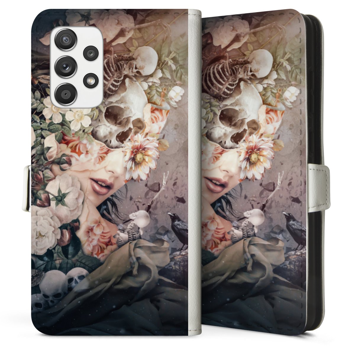 For our Sideflip Case we are using our advanced direct printing technology. The back and frontside are fully printabale, the inside of the phone bag is left unprinted. You can order the phone case without print, printed completely or also with a partial print.