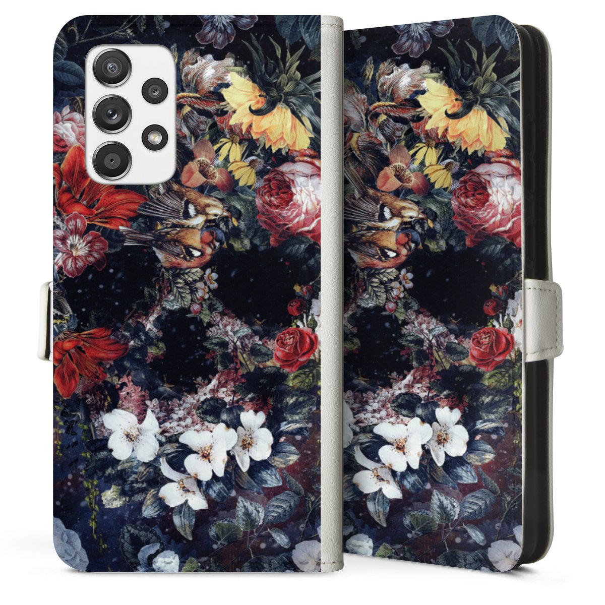 For our Sideflip Case we are using our advanced direct printing technology. The back and frontside are fully printabale, the inside of the phone bag is left unprinted. You can order the phone case without print, printed completely or also with a partial print.
