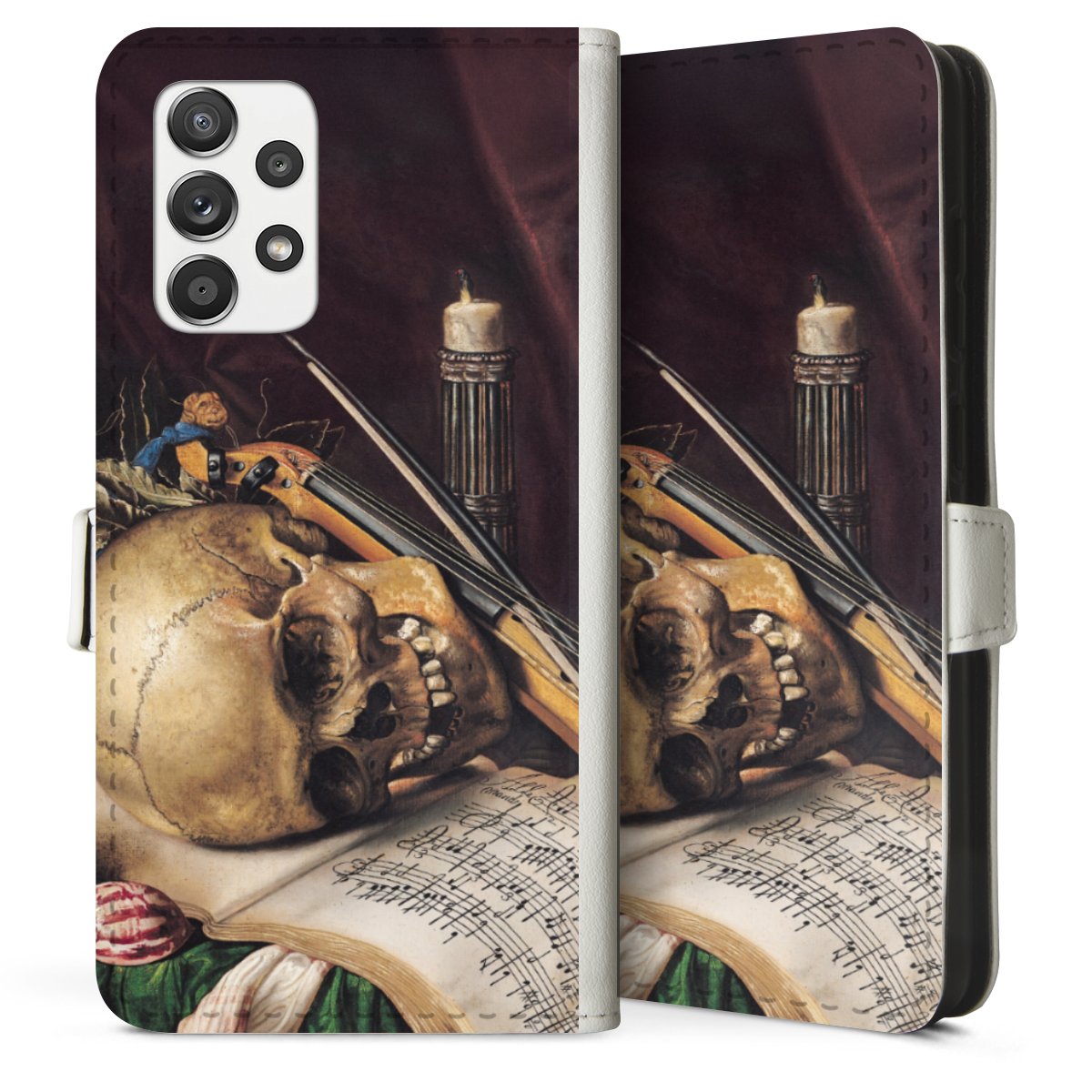 For our Sideflip Case we are using our advanced direct printing technology. The back and frontside are fully printabale, the inside of the phone bag is left unprinted. You can order the phone case without print, printed completely or also with a partial print.