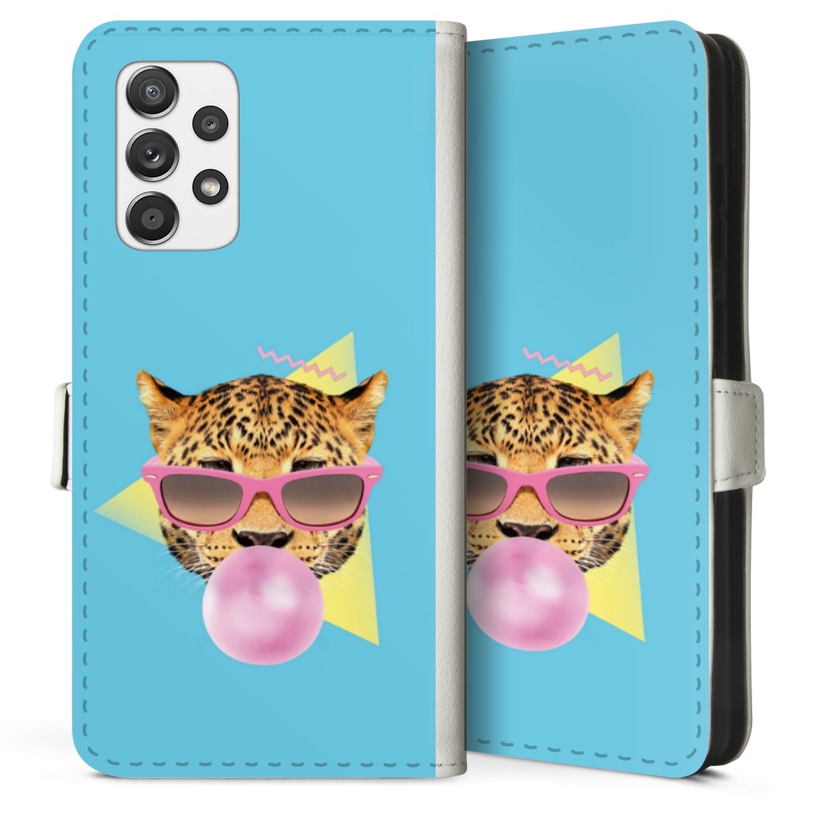 For our Sideflip Case we are using our advanced direct printing technology. The back and frontside are fully printabale, the inside of the phone bag is left unprinted. You can order the phone case without print, printed completely or also with a partial print.