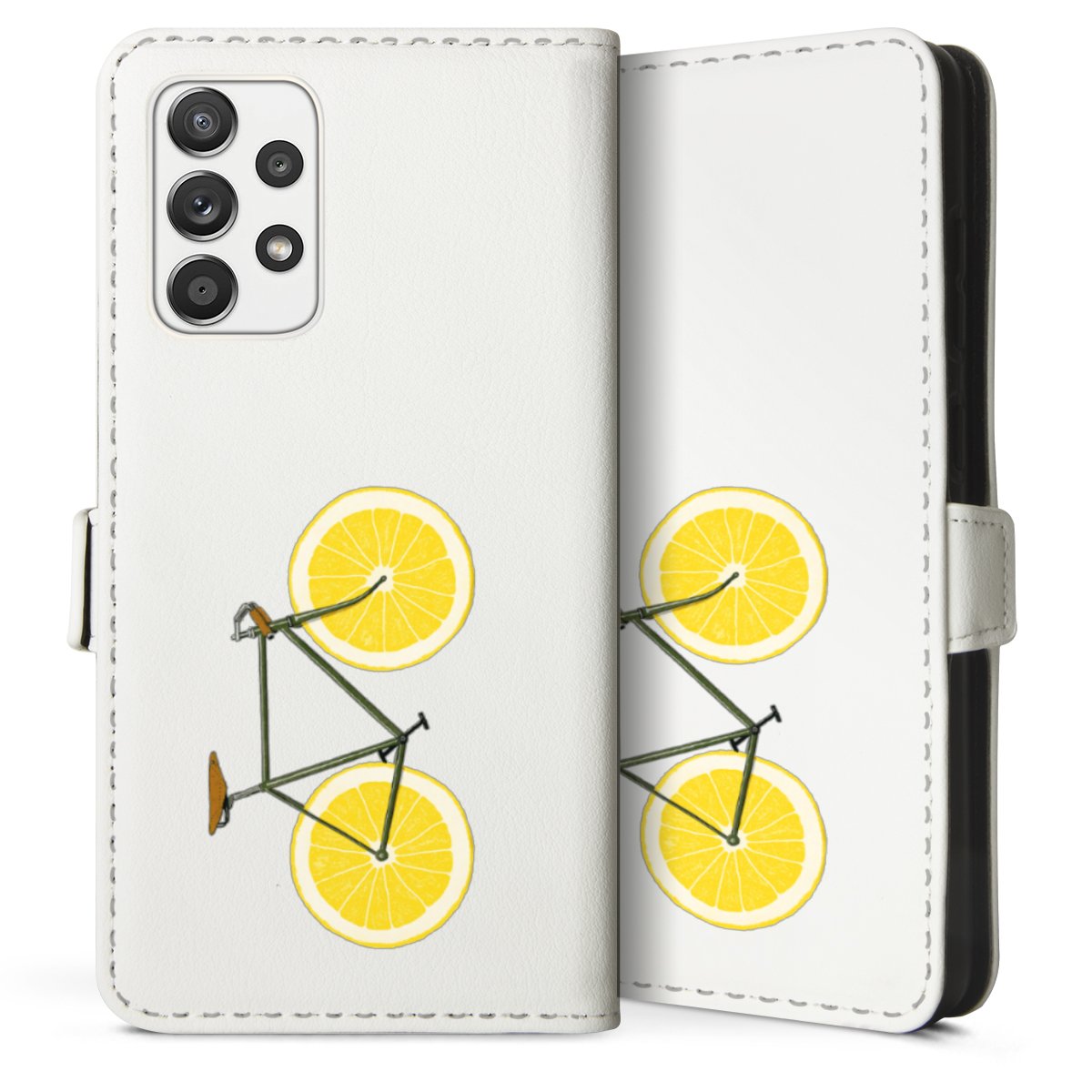 For our Sideflip Case we are using our advanced direct printing technology. The back and frontside are fully printabale, the inside of the phone bag is left unprinted. You can order the phone case without print, printed completely or also with a partial print.