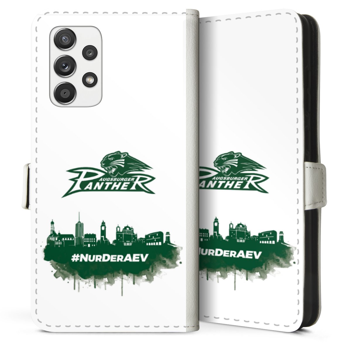 For our Sideflip Case we are using our advanced direct printing technology. The back and frontside are fully printabale, the inside of the phone bag is left unprinted. You can order the phone case without print, printed completely or also with a partial print.