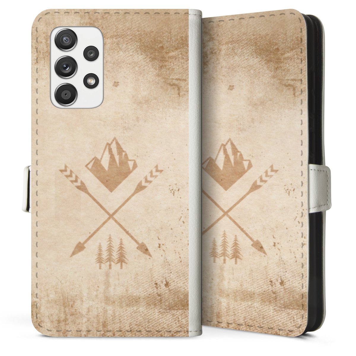 For our Sideflip Case we are using our advanced direct printing technology. The back and frontside are fully printabale, the inside of the phone bag is left unprinted. You can order the phone case without print, printed completely or also with a partial print.