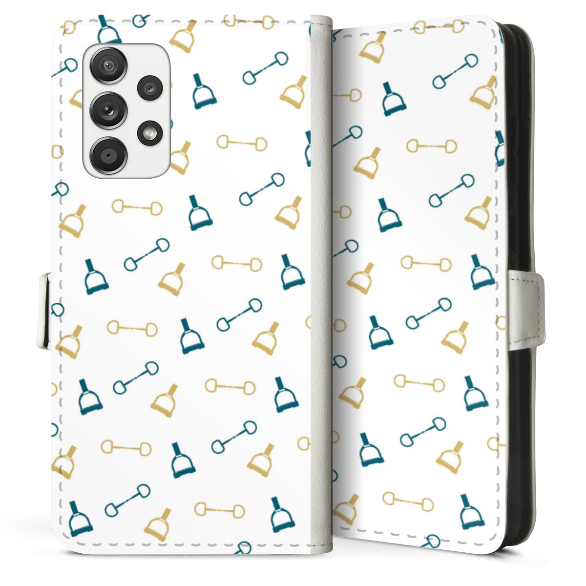 For our Sideflip Case we are using our advanced direct printing technology. The back and frontside are fully printabale, the inside of the phone bag is left unprinted. You can order the phone case without print, printed completely or also with a partial print.
