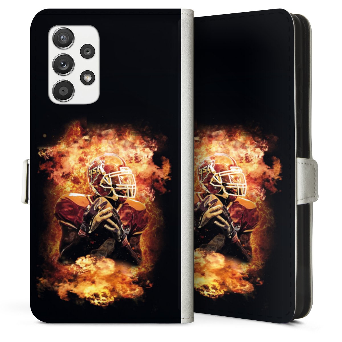 For our Sideflip Case we are using our advanced direct printing technology. The back and frontside are fully printabale, the inside of the phone bag is left unprinted. You can order the phone case without print, printed completely or also with a partial print.
