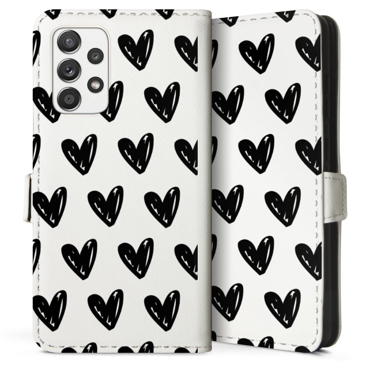For our Sideflip Case we are using our advanced direct printing technology. The back and frontside are fully printabale, the inside of the phone bag is left unprinted. You can order the phone case without print, printed completely or also with a partial print.