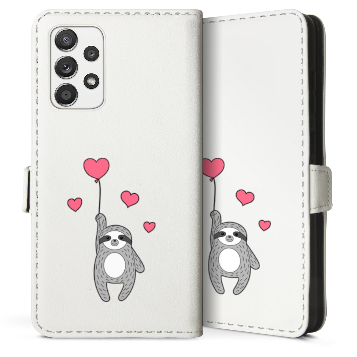 For our Sideflip Case we are using our advanced direct printing technology. The back and frontside are fully printabale, the inside of the phone bag is left unprinted. You can order the phone case without print, printed completely or also with a partial print.