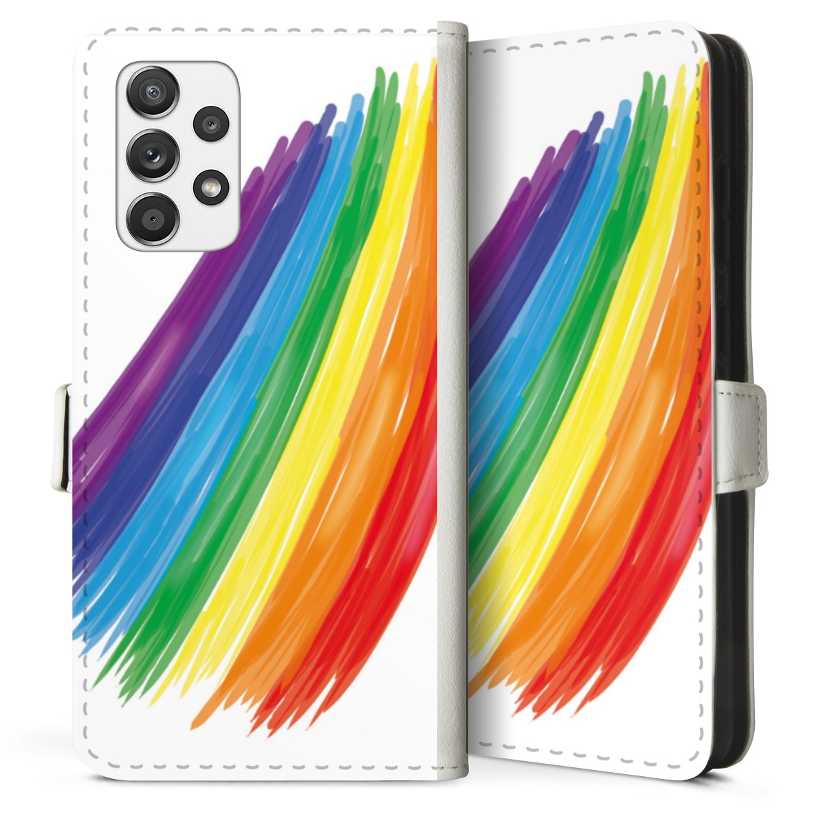 For our Sideflip Case we are using our advanced direct printing technology. The back and frontside are fully printabale, the inside of the phone bag is left unprinted. You can order the phone case without print, printed completely or also with a partial print.