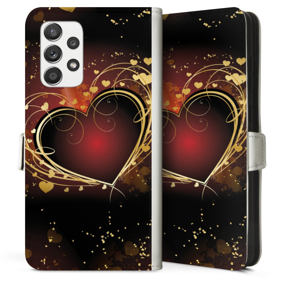 For our Sideflip Case we are using our advanced direct printing technology. The back and frontside are fully printabale, the inside of the phone bag is left unprinted. You can order the phone case without print, printed completely or also with a partial print.