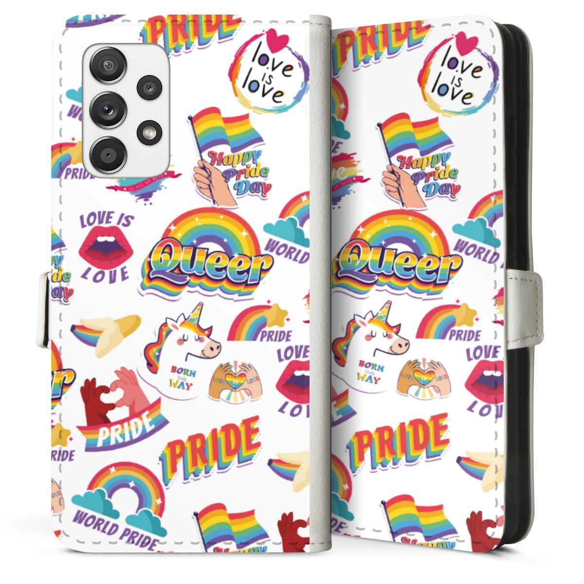 For our Sideflip Case we are using our advanced direct printing technology. The back and frontside are fully printabale, the inside of the phone bag is left unprinted. You can order the phone case without print, printed completely or also with a partial print.