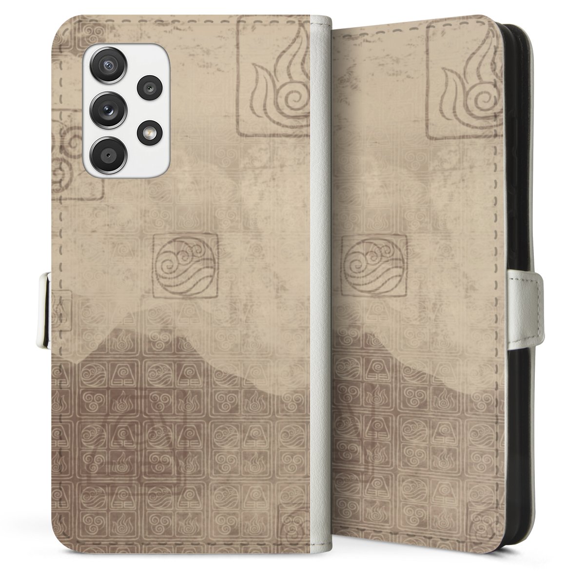 For our Sideflip Case we are using our advanced direct printing technology. The back and frontside are fully printabale, the inside of the phone bag is left unprinted. You can order the phone case without print, printed completely or also with a partial print.