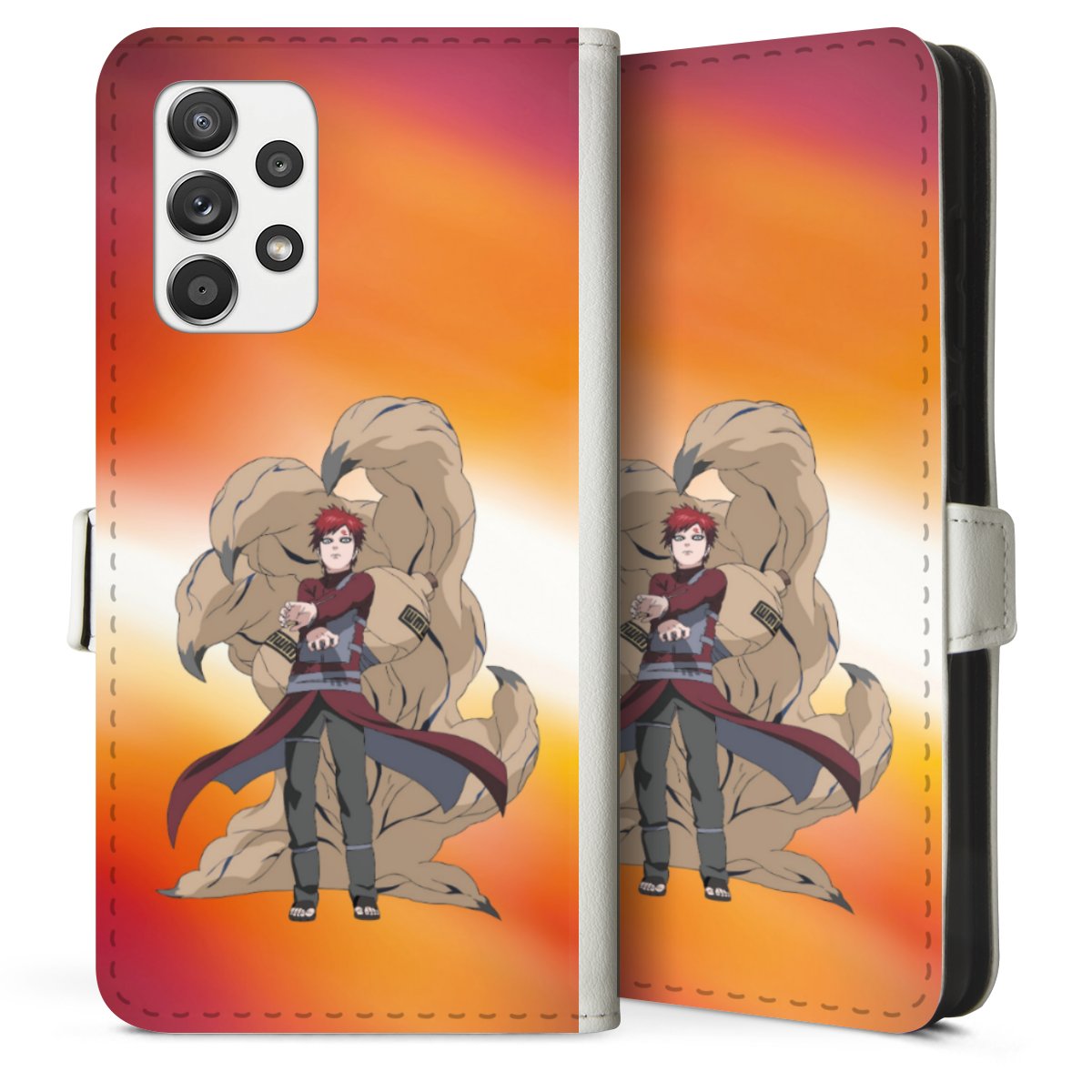For our Sideflip Case we are using our advanced direct printing technology. The back and frontside are fully printabale, the inside of the phone bag is left unprinted. You can order the phone case without print, printed completely or also with a partial print.