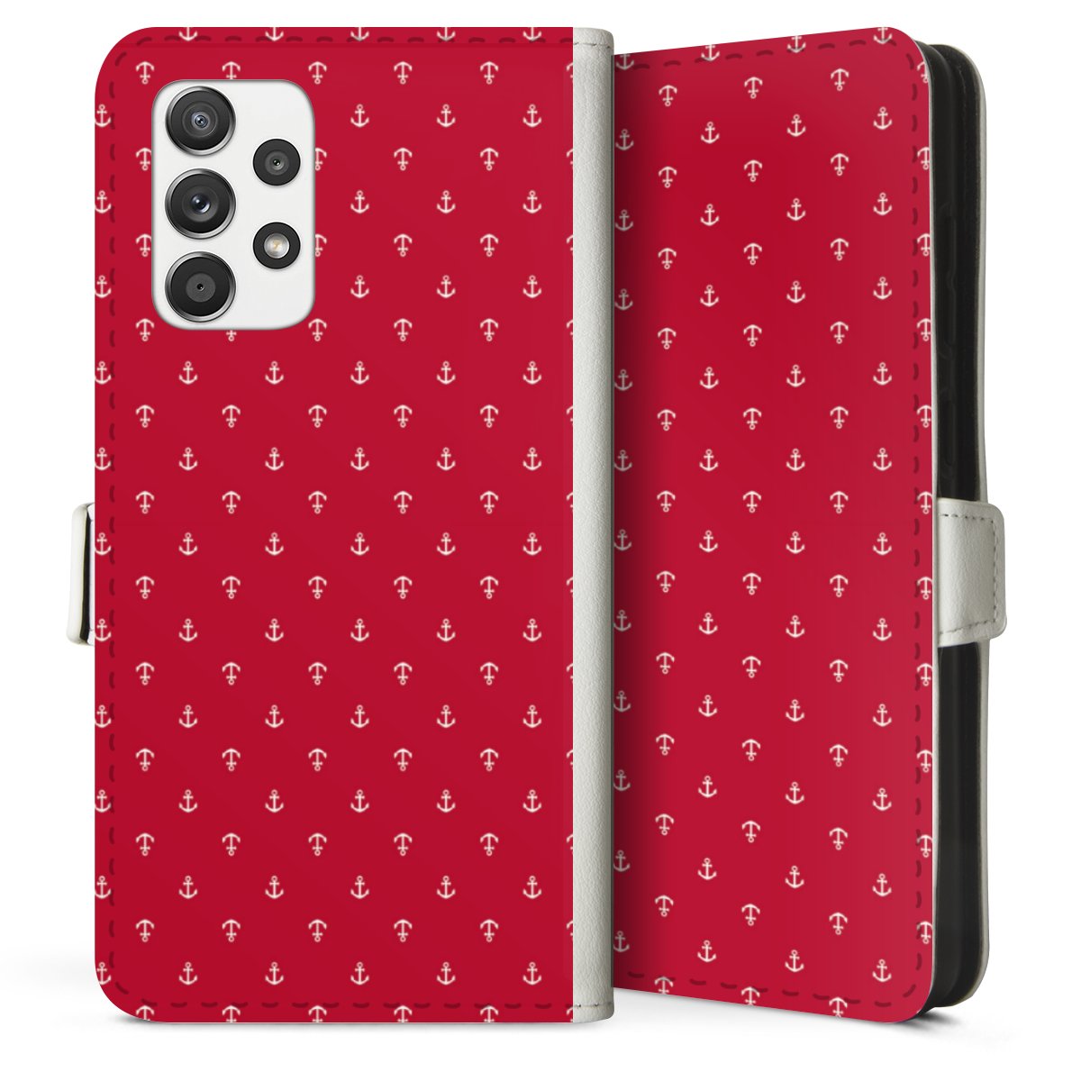 For our Sideflip Case we are using our advanced direct printing technology. The back and frontside are fully printabale, the inside of the phone bag is left unprinted. You can order the phone case without print, printed completely or also with a partial print.