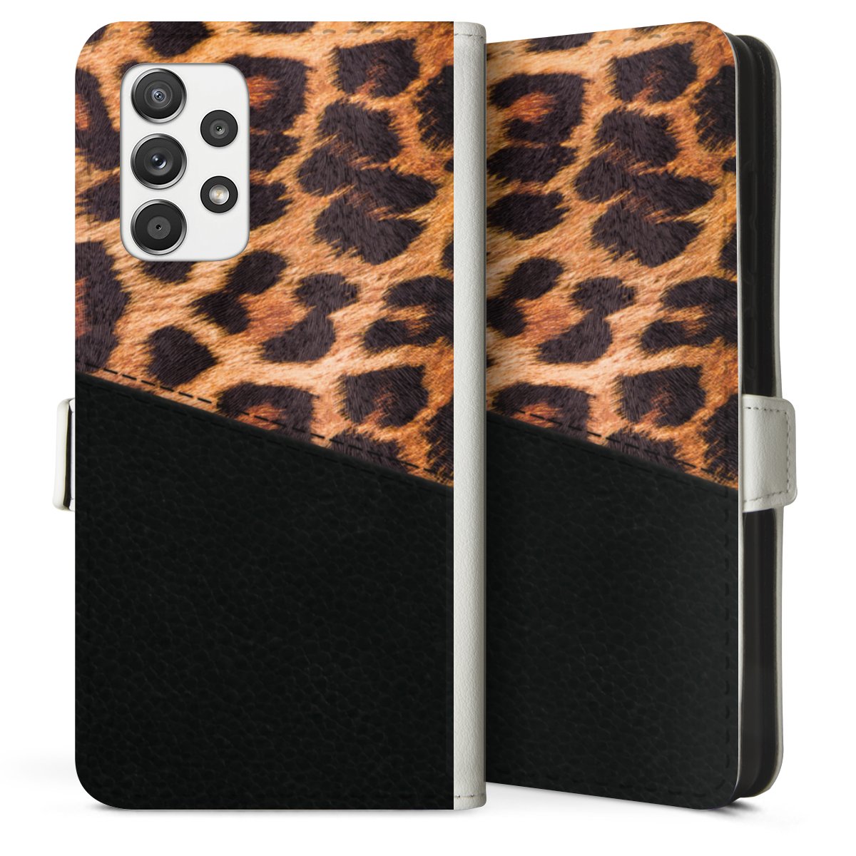 For our Sideflip Case we are using our advanced direct printing technology. The back and frontside are fully printabale, the inside of the phone bag is left unprinted. You can order the phone case without print, printed completely or also with a partial print.