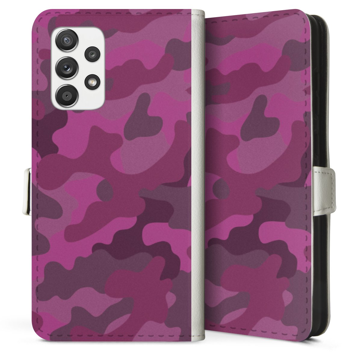 For our Sideflip Case we are using our advanced direct printing technology. The back and frontside are fully printabale, the inside of the phone bag is left unprinted. You can order the phone case without print, printed completely or also with a partial print.