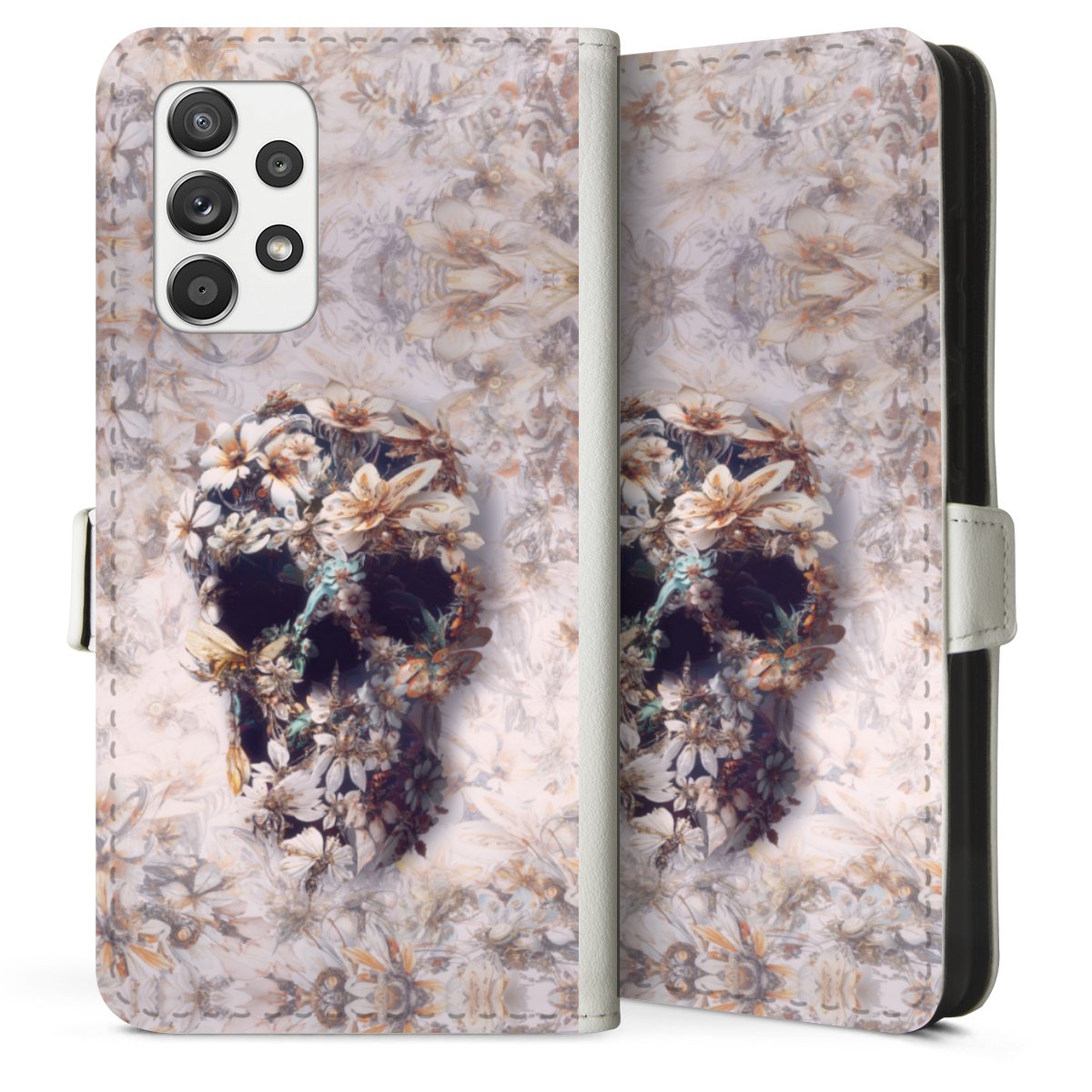 For our Sideflip Case we are using our advanced direct printing technology. The back and frontside are fully printabale, the inside of the phone bag is left unprinted. You can order the phone case without print, printed completely or also with a partial print.