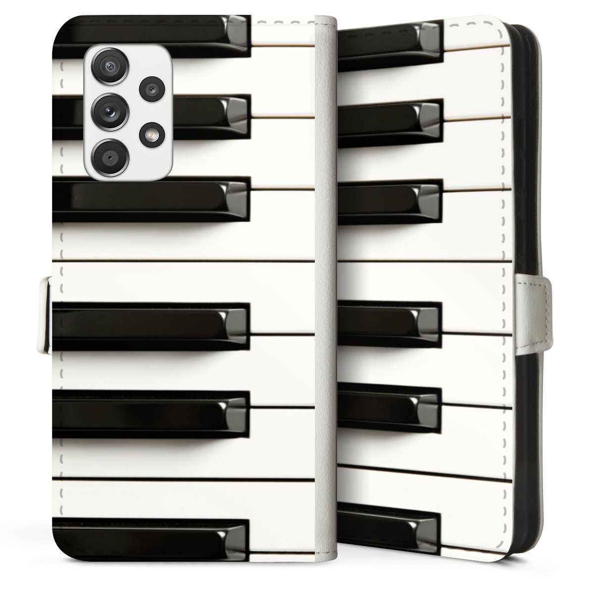 For our Sideflip Case we are using our advanced direct printing technology. The back and frontside are fully printabale, the inside of the phone bag is left unprinted. You can order the phone case without print, printed completely or also with a partial print.