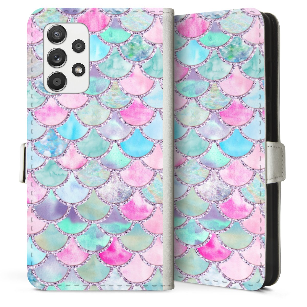 For our Sideflip Case we are using our advanced direct printing technology. The back and frontside are fully printabale, the inside of the phone bag is left unprinted. You can order the phone case without print, printed completely or also with a partial print.