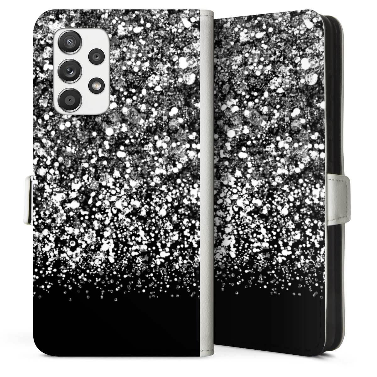 For our Sideflip Case we are using our advanced direct printing technology. The back and frontside are fully printabale, the inside of the phone bag is left unprinted. You can order the phone case without print, printed completely or also with a partial print.