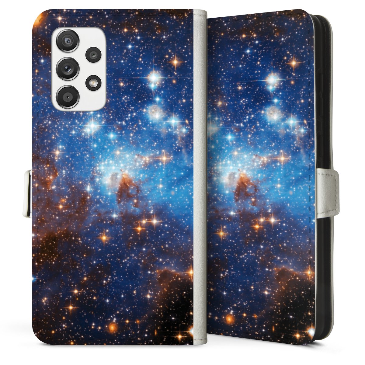 For our Sideflip Case we are using our advanced direct printing technology. The back and frontside are fully printabale, the inside of the phone bag is left unprinted. You can order the phone case without print, printed completely or also with a partial print.