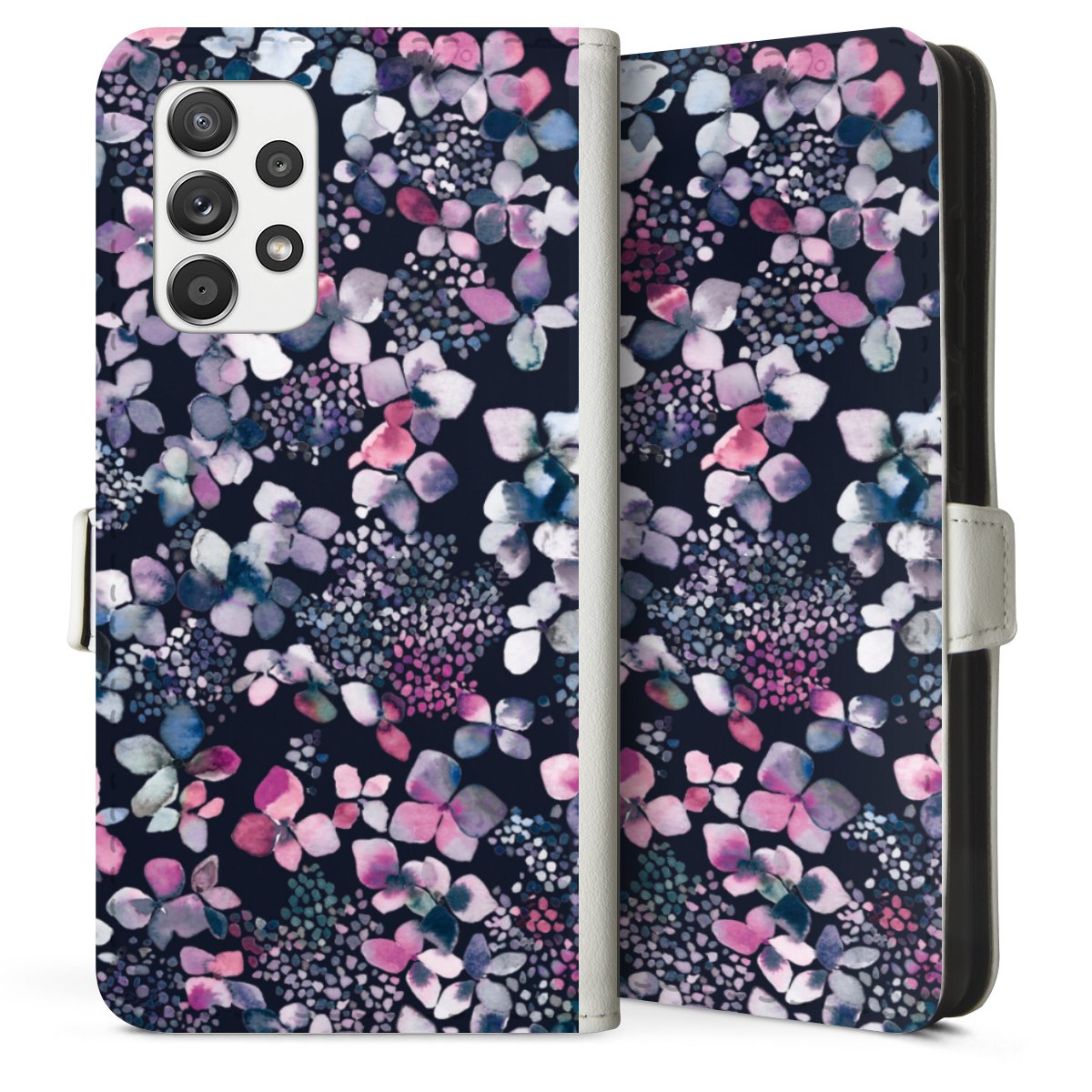 For our Sideflip Case we are using our advanced direct printing technology. The back and frontside are fully printabale, the inside of the phone bag is left unprinted. You can order the phone case without print, printed completely or also with a partial print.