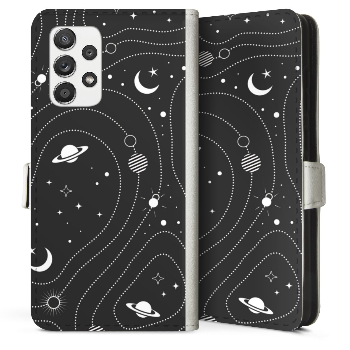 For our Sideflip Case we are using our advanced direct printing technology. The back and frontside are fully printabale, the inside of the phone bag is left unprinted. You can order the phone case without print, printed completely or also with a partial print.
