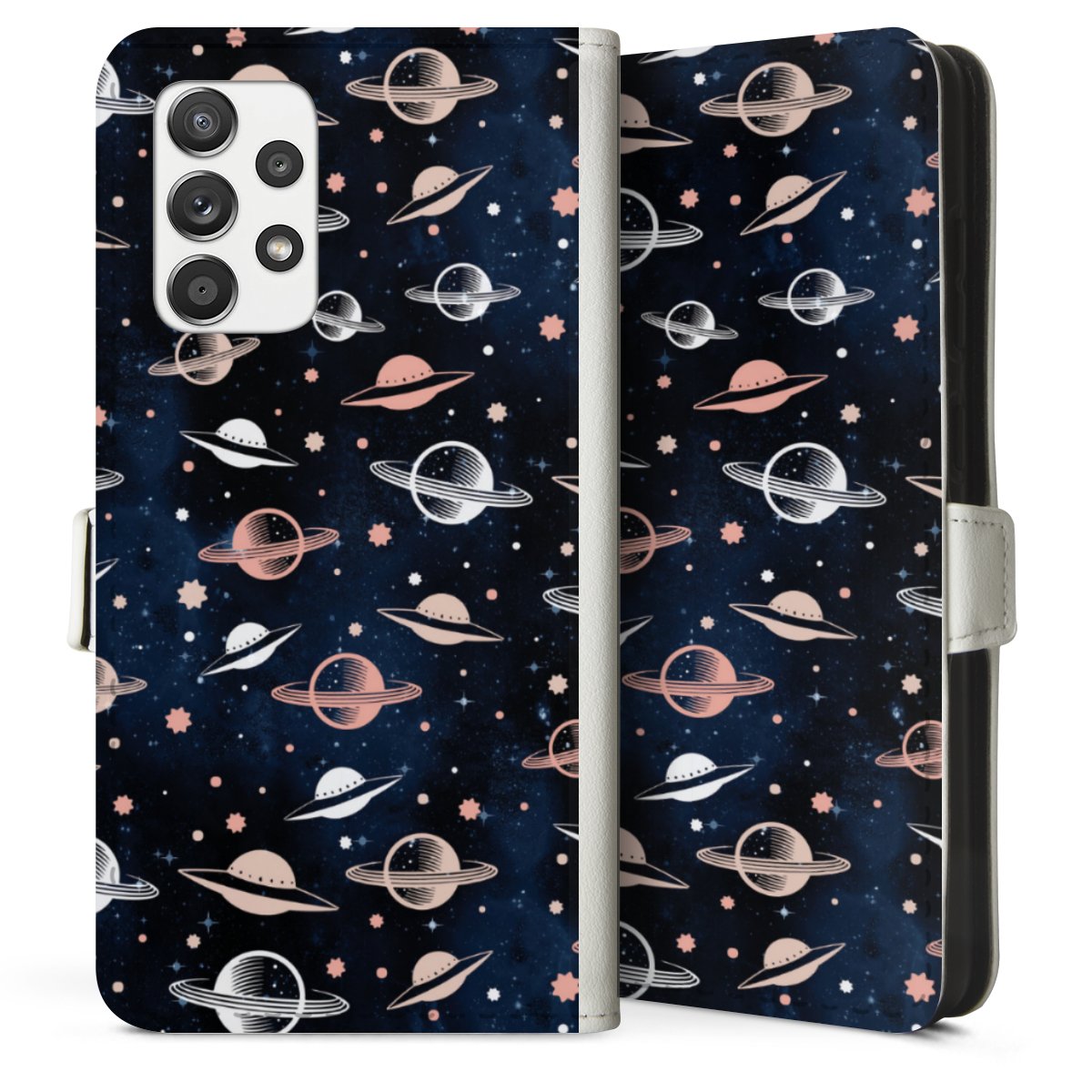 For our Sideflip Case we are using our advanced direct printing technology. The back and frontside are fully printabale, the inside of the phone bag is left unprinted. You can order the phone case without print, printed completely or also with a partial print.
