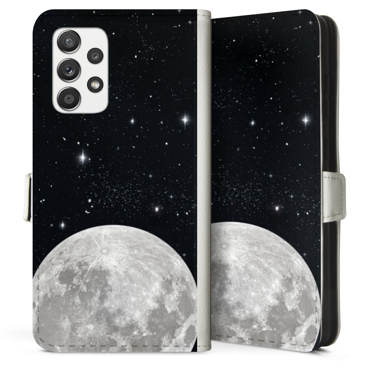 For our Sideflip Case we are using our advanced direct printing technology. The back and frontside are fully printabale, the inside of the phone bag is left unprinted. You can order the phone case without print, printed completely or also with a partial print.