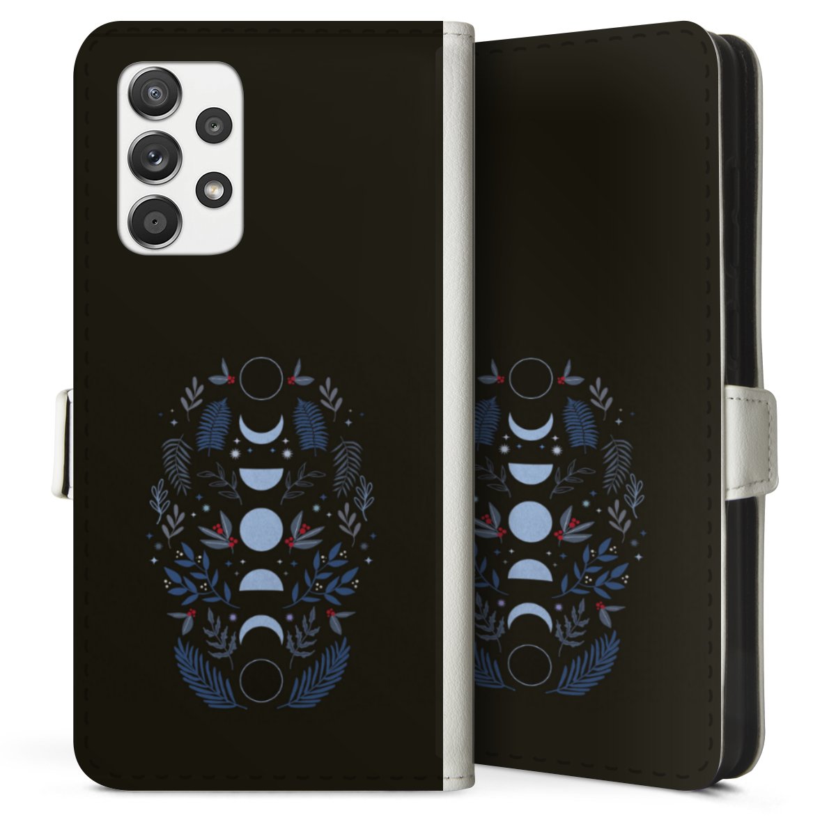 For our Sideflip Case we are using our advanced direct printing technology. The back and frontside are fully printabale, the inside of the phone bag is left unprinted. You can order the phone case without print, printed completely or also with a partial print.