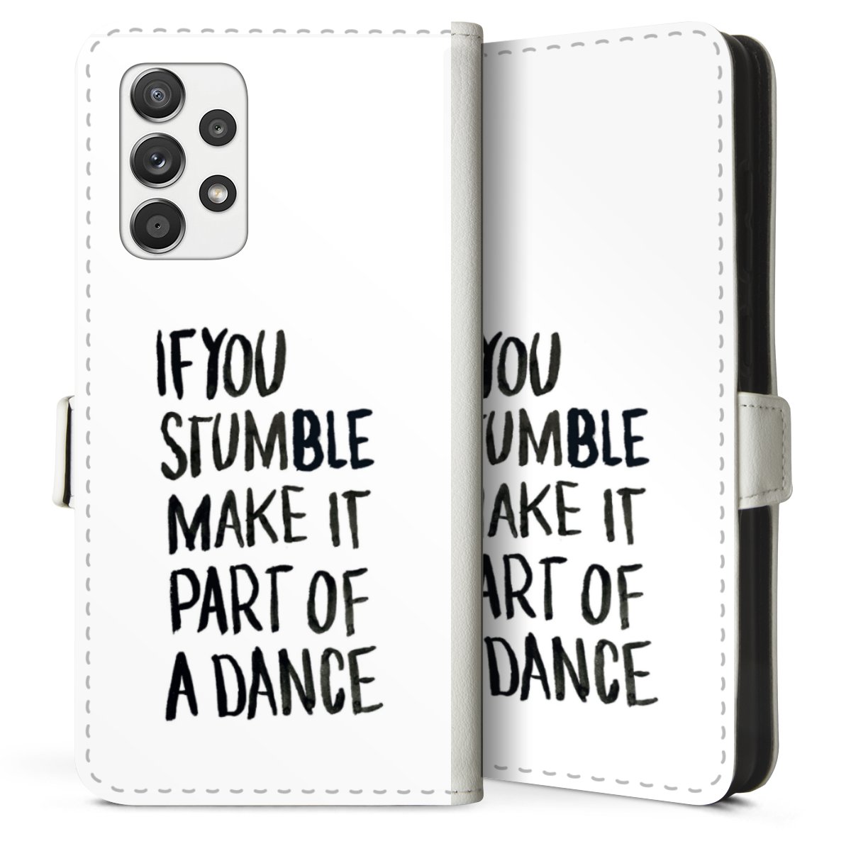 For our Sideflip Case we are using our advanced direct printing technology. The back and frontside are fully printabale, the inside of the phone bag is left unprinted. You can order the phone case without print, printed completely or also with a partial print.